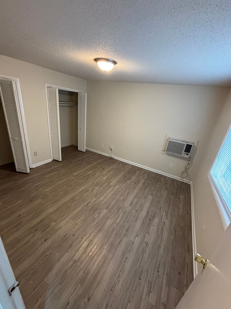 Spacious 2nd floor apartment on Gorman St. near Western Blvd. Fully equipped kitchen. Two large bedrooms on opposite ends of the unit with reverse cycle (a/c-heat) wall units in each. Great roommate setup! Wood burning fireplace. Deck with storage room. Parking in shared lot. Tenant responsible for water and electric utilities. No pets or smoking please.