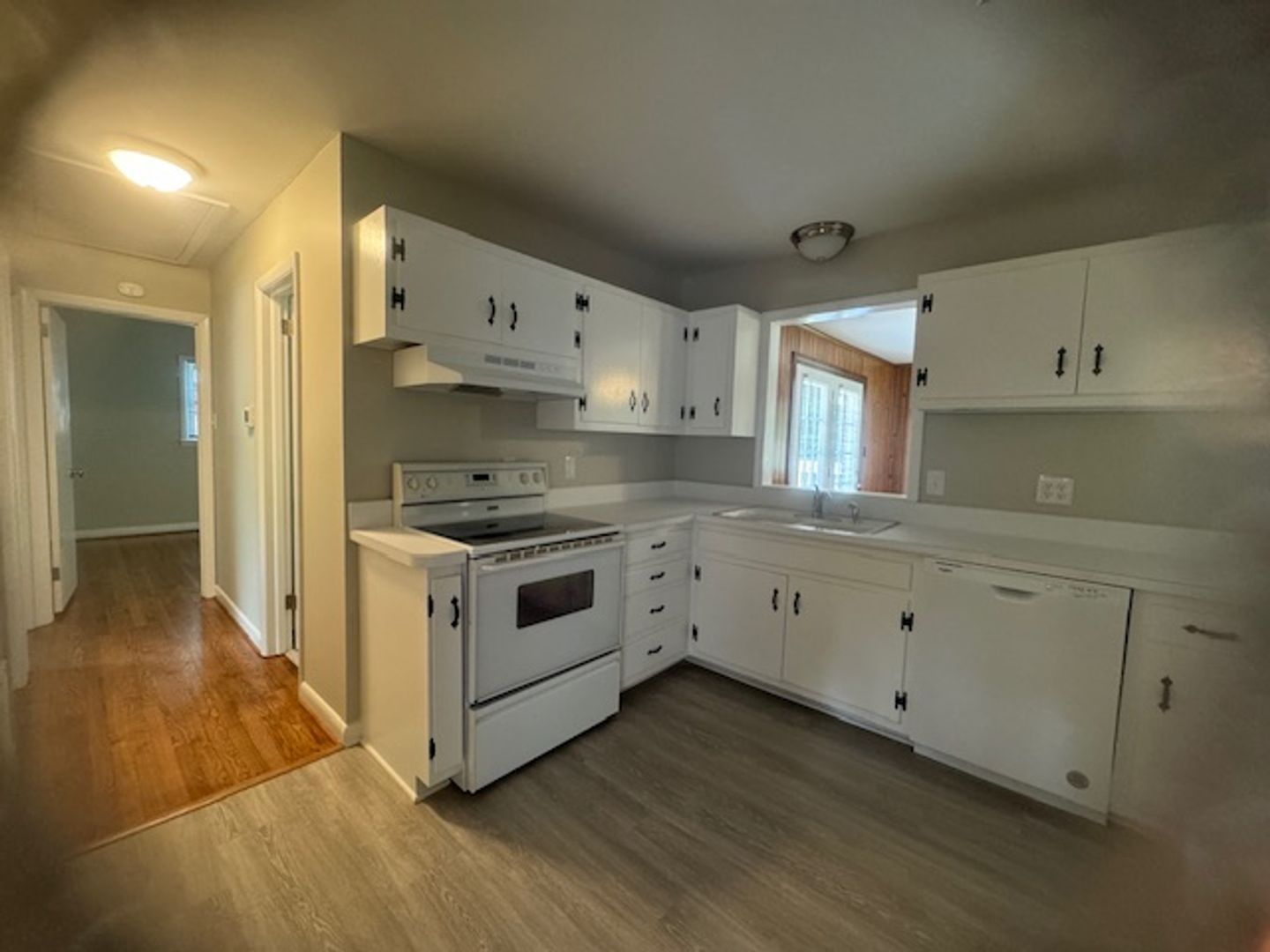 Charming 3-bedroom, 1.5-bath ranch featuring a bright and open sunroom and hardwood floors throughout. The fully equipped kitchen includes a refrigerator, stove, dishwasher, eat-in area, and pantry.