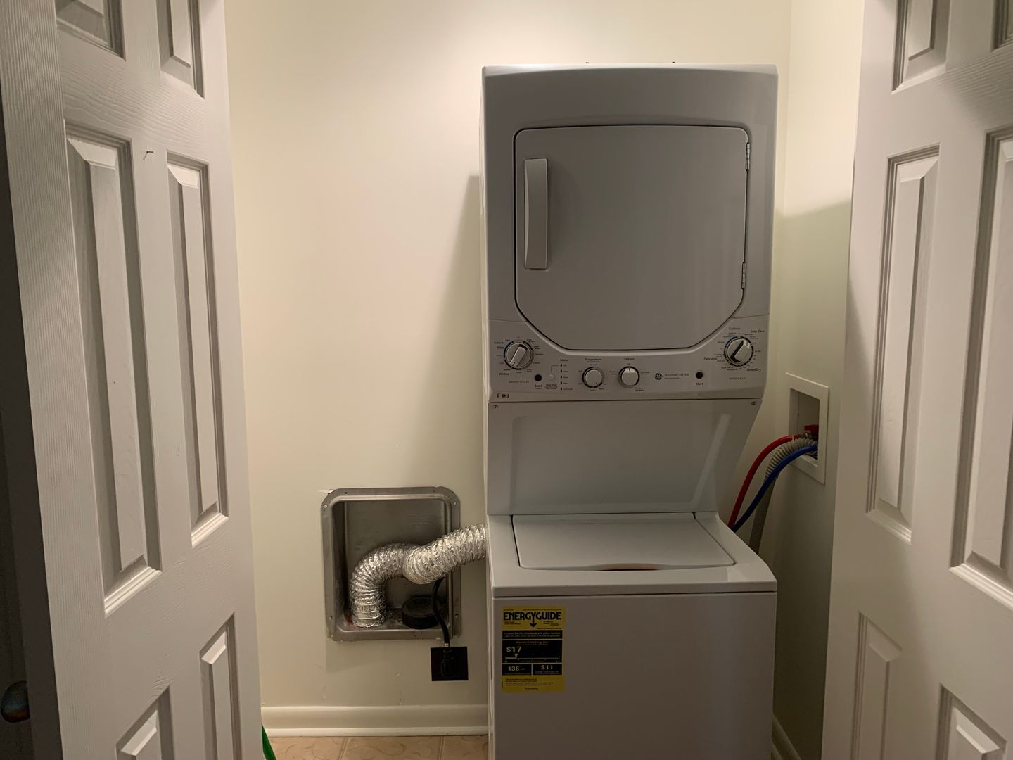 A washer/dryer combo is included. There is a full basement for your storage needs, and private driveway parking.