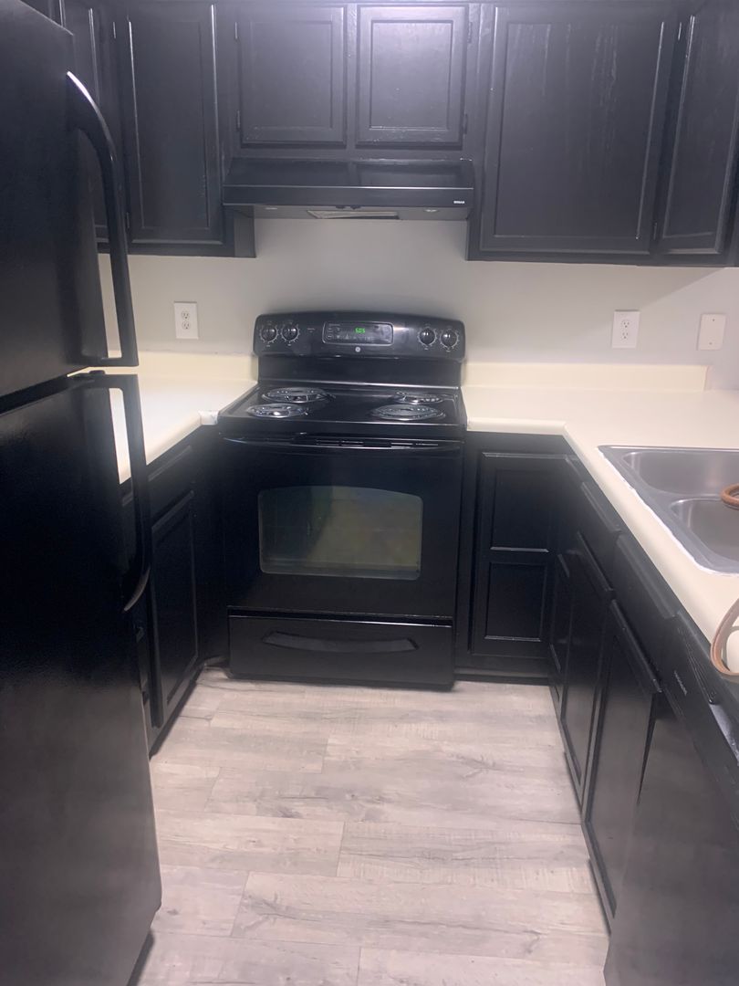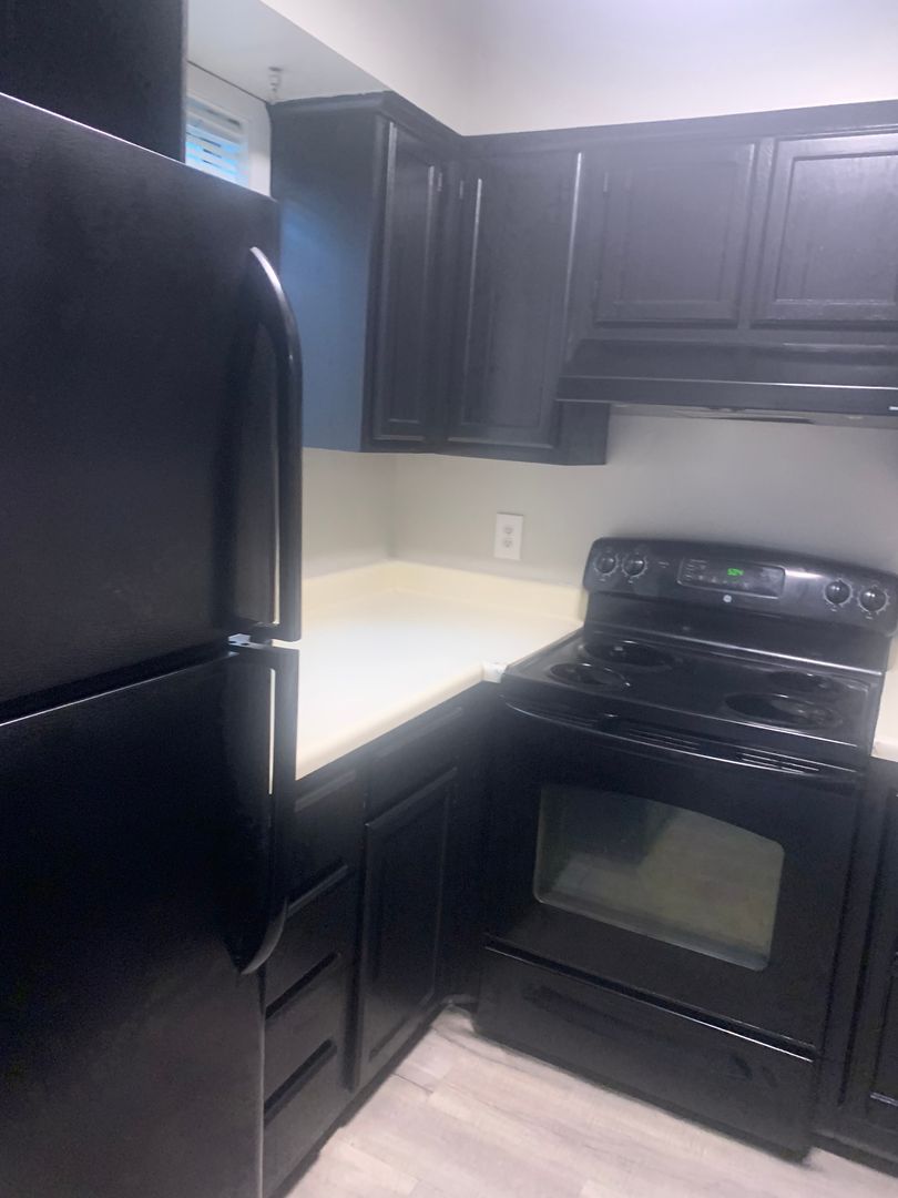 The kitchen is equipped with sleek black appliances, complementing the freshly painted walls and giving the space a modern and sophisticated look. A downstairs 1/2 bath is perfect for guests. Additionally, the apartment offers exterior storage, providing extra space for your belongings, and a back deck for entertaining or to enjoy the great outdoors.