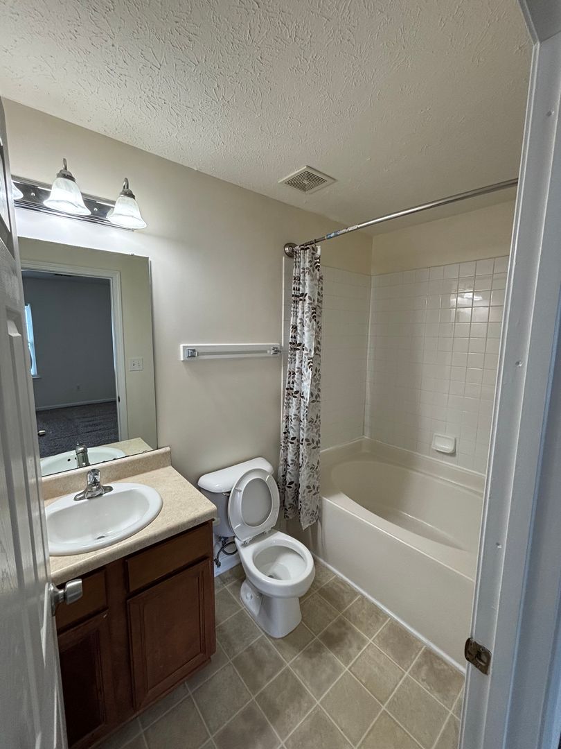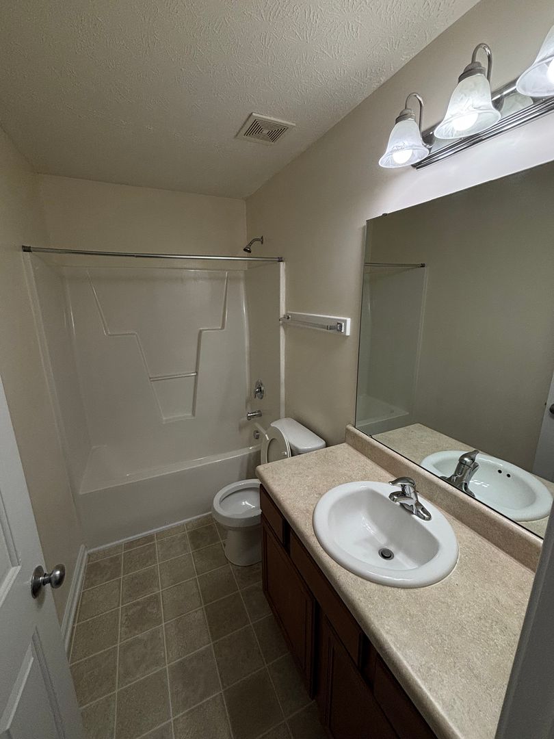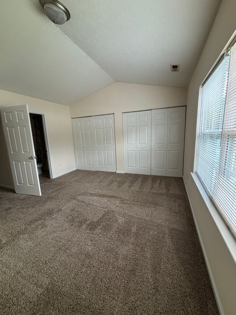 Upstairs, you’ll find two master bedrooms, each with its own full bathroom—one including a garden tub. Washer and dryer hookups are also located on the second floor. The unit includes a one-car garage with an automatic opener and one additional parking space (maximum of two parking spaces total).