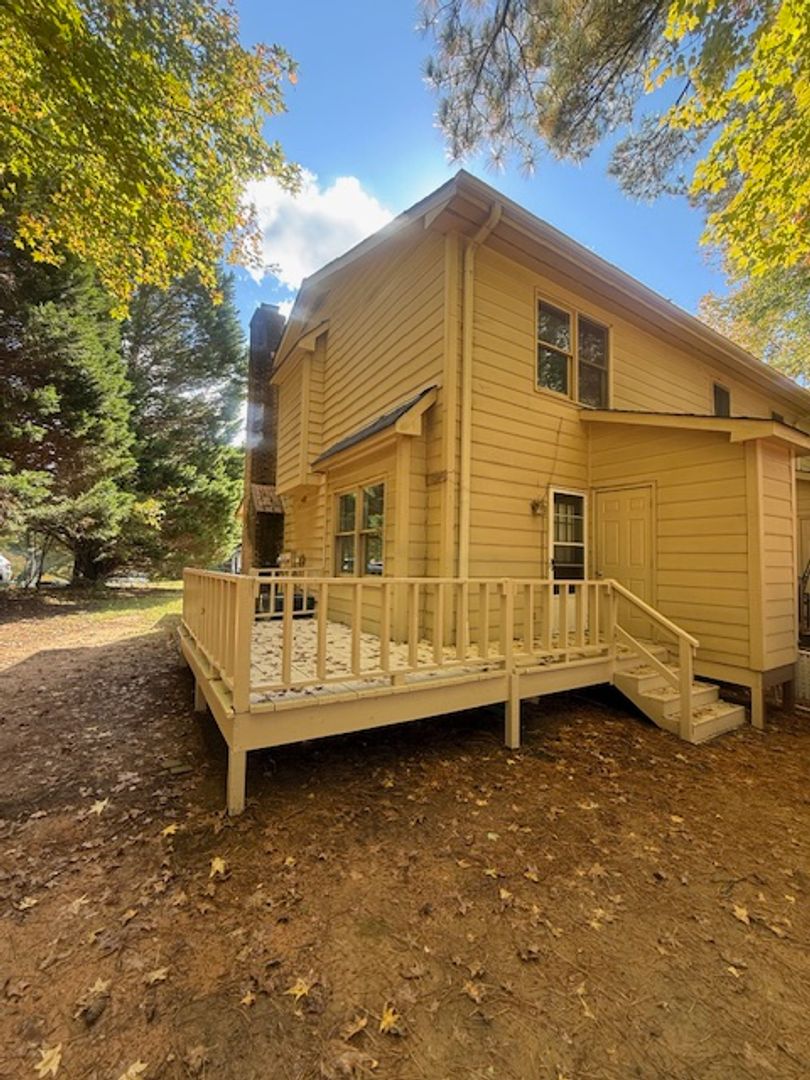 Spacious 2-bedroom, 2.5-bath end unit in Chatham Woods. Centrally located in Cary. Enjoy a private and serene setting with a fully equipped eat-in kitchen, large laundry room with washer/dryer connections, and a cozy living room featuring a wood-burning fireplace. Relax on the front porch with rocking chairs or entertain on the deck overlooking a private wooded lot. Additional outside storage included. No pets permitted.
